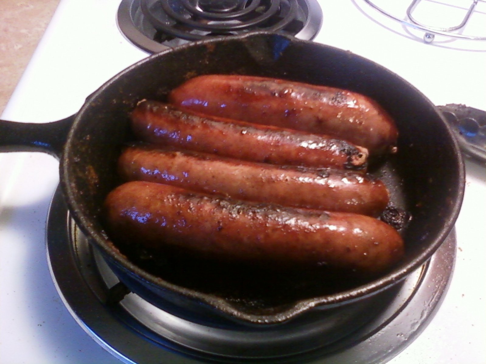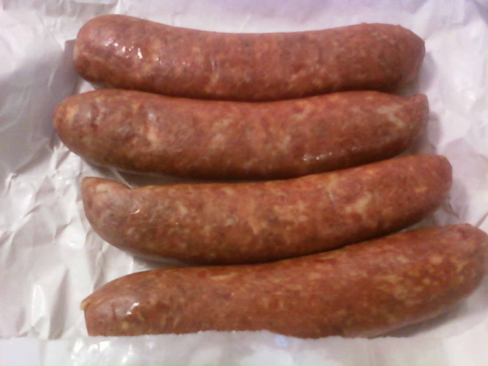 Bavarian Brats made here in the US by a German butcher.......Sweeet!! Just needed a little mustard and some pototo salad and all was good!