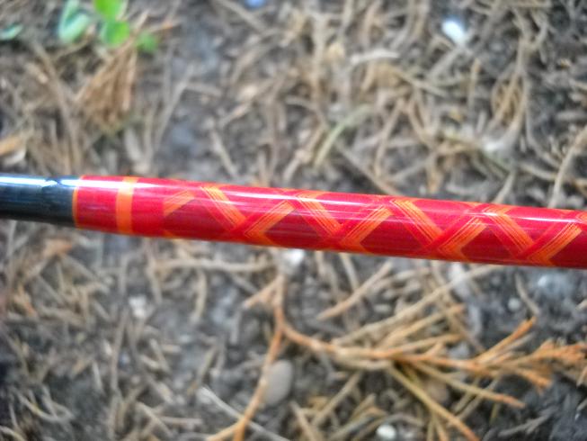 Another 5'6'' Ultra lite built for a friend for dock shooting....Got to try my first double chevron on the butt wrap..Man you talk about your eyes go crazy!! haha!...Tried do a simple fade effect with the orange,red-orange,and dark red thread...The pictures really dont do it justice..Plus the glare makes the epoxy look funny...I need to work on better indoor photos.
