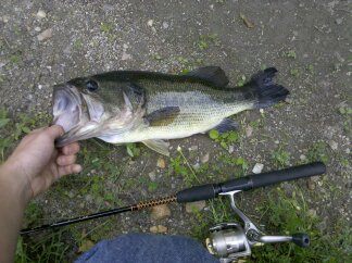 Very nice bass. You're hooked now so I will give you some advice that I have learned over the past few years in regards to taking photos by yourself. This not to say I have all of these things as I am on a tight budget with fishing.