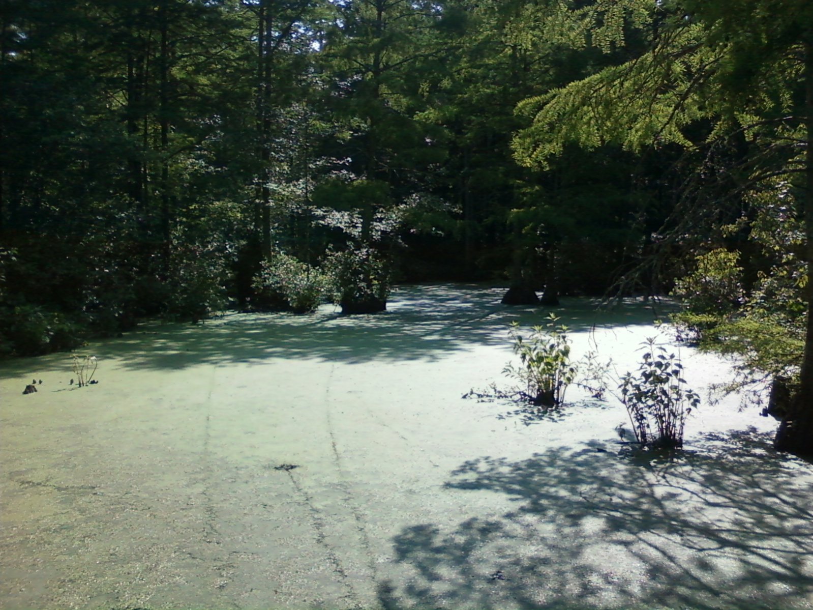 Not a lot of pressure. Jigs aren't the best since it's only 2-3 feet deep and the bottom is covered with a nasty algae that slimes the baits and line. Takes a while to remove from the bait. Weightless is the way to go when fishing shallow.