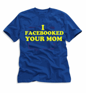 For your teeshirt idea ya might just use the word "FACEBOOK" but add one of those big red circles with the slash thru it that means "NO" over it.......Should get the point across....lol. But then whatcha gonna do about the MySpace folks?