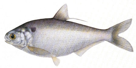 When I got interested in painting my own crankbaits, I did a little research for reference pics of the shad here in Arkansas.....As far as I know we only have Gizzard and Threadfin shad in the 300 acre lake I primarily fish....they are very simular....Here's a couple of pics that might help identify yours.