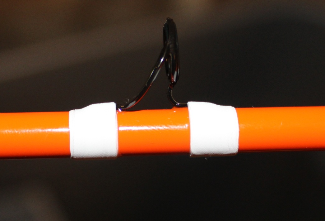 I hope it would make Bill Dance proud hahahaha Not finished yet. I have to finish the tiger wrap and install decals and debate on whether or not to leave the orange tinted white, or roll with it. Handle assembly And just simple guide wraps. This is the second layer on the guides. The guide foot bled through pretty bad. I could live with the color tint from the black, but didn't care much with the foot showing like it did.