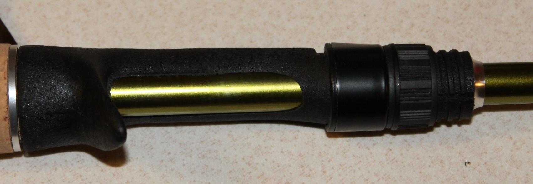 I started working on this one the other day for a good friend of mine to give to him as a present for the countless trips he has took me and probably responsible for keeping me on the water when my Grandpa's health deteriorated and he passed. He always wanted a spiral wrapped rod since we went to the Bassmaster tourney on Ross Barnett in '96. And the last time we went fishing we were talking about the micro guides, so I am going to try to give him the best of both worlds. This rod is built on a 6'6" Castaway crankbait blank Med-Mod. It is equipped with American Tackle micros, except for the stripper: Double foot 6, 5, and 4s the rest of the way out. I went with an EVA split grip with aluminum checks and one blue check on the foregrip. I was sort of worried about the rod from not making a spiral, but I tossed a Bandit abotu 35 steps today without loading the rod. I didn't really put out because the thread has not been coated yet. But I am really pleased with the castability and smoothness of these micros. I will post some more pics when I finish it. I also threw in the handle pics of "Mean Green", a topwater rod I am building for myself. It is an FTU IM10 blank that will have micros on it too. But that is for next month when I get in from overseas.