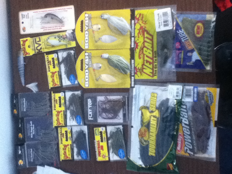 XPS Superlock Hooks 3/0 XPS Round Bend Hooks 3/0 XPS Round Bend Hooks 2/0 Lucky Craft Live Pointer 95-Ghost Minnow SK Tour Grade Football Jig 3/8-Black/Blue (2)SK Tour Grade FB Jig 3/8- Green Pumpkin Craw SK Tour Grade FB Jig 3/8-Candy Craw KVD 1.5-Chart Sexy XPS Nitro Series Medium Runner-Texas Shad Buckeye Lures Flat Top Finesse Jig 3/8-Pumpkin Purple Booyah Bassinator 3/8-Foxy Shad Booyah Bassinator 3/8-Glimmer Shad BPS 5 3/8" Stick-O-Junebug Netbait Paca Chunk-Green Pumpkin Berkley 3" Chigger Craw- Cinnamon Purple SK Bitsy Tube-Green Pumpkin Darn you monkey......but thanks ![]() Sorry about the pic...dont know why its sideways.