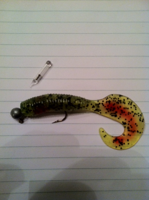 (Zoom Fat Albert single tail) I also insert a Venom Glass rattle inside , then I take a Spike It Marking Pen and add a scent of garlic and add a red stripe at the tail and let the tail do all the work |