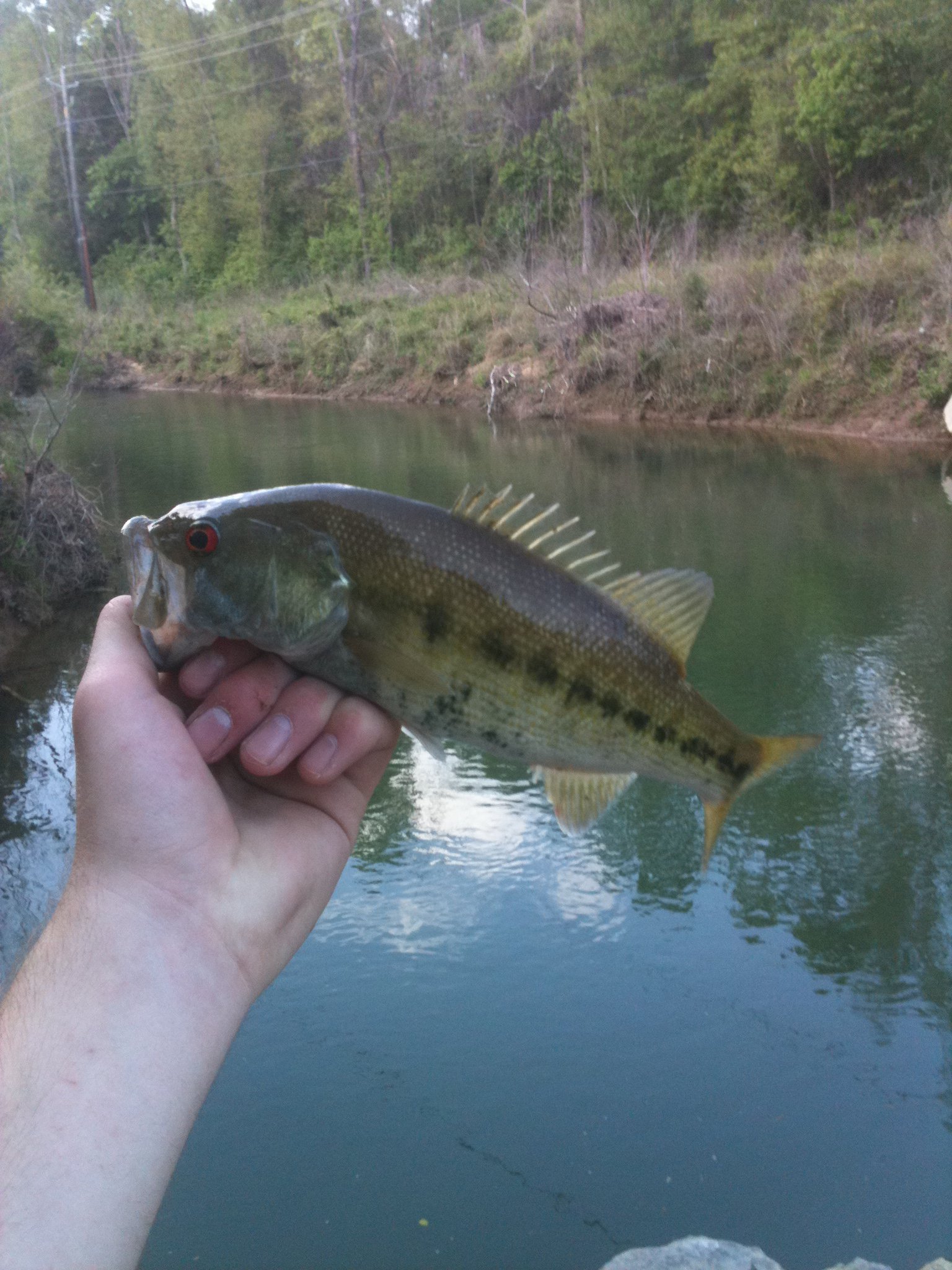 A friend of mine down in Bama caught this bass in a little creek. Looks like smallie to me because of the dorsal fin, and eye. But with the sports, I'm not 100% sure. So, what kinda bass!
