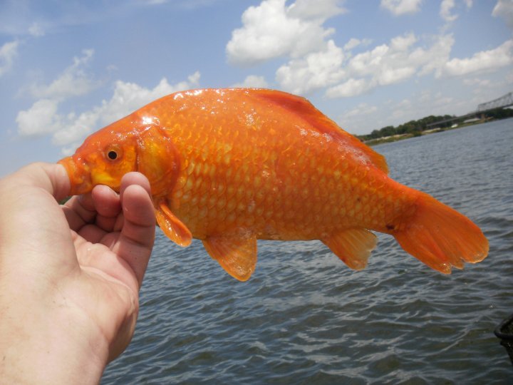 I'll have to find one. The goldfish on the river don't look like the ones you find in fish tanks. Much darker orange with some have brown on their backs.