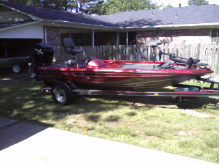 BWAAAHAHAHAHAHAHAHAHAHAHAHA!!!!! it looks great doc for real. love the "crimson" colors. hehehe, it looks liek it'll get oyu where oyu are going to. i had a 150 max years ago. great motor. not like my ol johnson, it is always a cold starter. meaning it takes a while to start in the morning. not the merc, always fired right up. minor details ont he seats and such. actually looks better in the shine area than mine. mine is very dull. and is in need of a overhaul. maybe one day it'll happen for me. take her out and enjoy her pal. post up pics of oyur first catch on her too now ok?