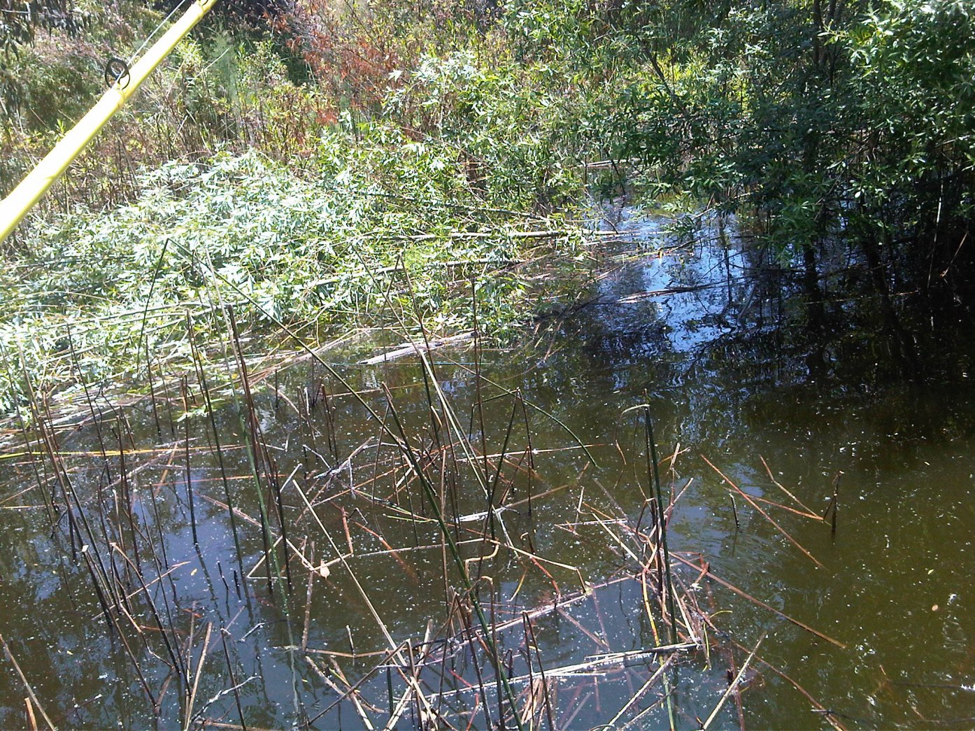 The sun finally broke through around 11, so I switched over to the flipping stick and began to hit the trees. After an hour I got my only good strike of the day. I was tossing a 5" reaction innovations tube under the trees and watched my line run. I set the hook hard and felt the weight, a head shake, and then nothing. That was it for the day. Three total bites and no fish.