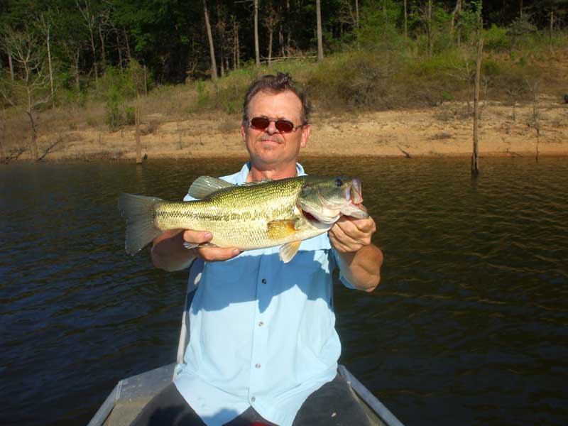 So we loaded up and drove down to Gillham lake, and had us a look see.....It was a much bigger lake then the 300 acre ones we usually fish,but it was still a small enough lake your not gonna get lost on by any means. I really liked the look of the water and all the standing timber, so it wasn't long before we was hunting our first fishing spot, which was difficult for a couple of rookies on a new lake...lol. We didn't hit the water till about 2pm, and by the time we left, we'd only caught a couple of bass each, and Ron even caught a couple of bream and big'ol Saugeye on his spinnerbait,while I caught both of mine on a Viscious crankbait I'd picked up from Wallyworld the other day.....I'll be snaggin a couple more of those....lol....But the bass we caught were nice pretty and fat, so all in all we had a good evening....Heres a couple of braggin pics to end the day.....We had a great time and we'll be going back.