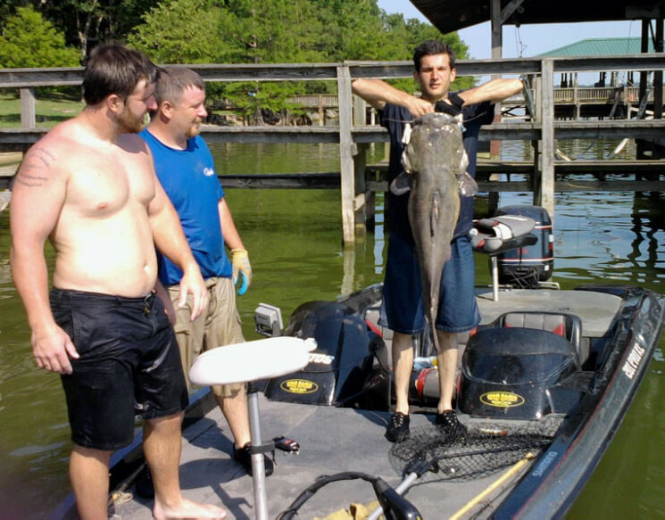 Yesterday was opening day for noodling/hogging season here in South Arkansas. Me and a few buddies met up at lake Chicot. We caught this one and 1 more that weighed 32lbs. We had another fish in the hole with this one that was bigger, but the hole was too large to reach to the back of, and we couldn't ever get a hold of the fish. Who needs an pole or trotline for big cats...? NOT US!