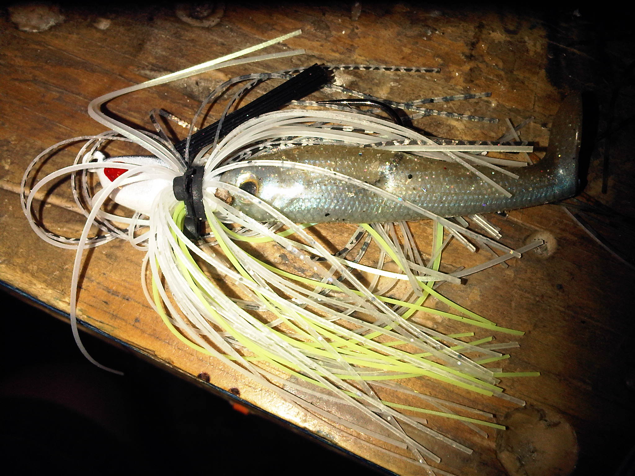 I've got a few Booyah swim jig heads. This one has a Poor Boy's Silly Rabbit swimbait as a trailer (awful swimbait, good swim jig trailer), and a skirt I made to match the swimbait. ![]() I'm interested to hear everyone's ideas on the swim jig too as I'd like to get a little better at it. BB