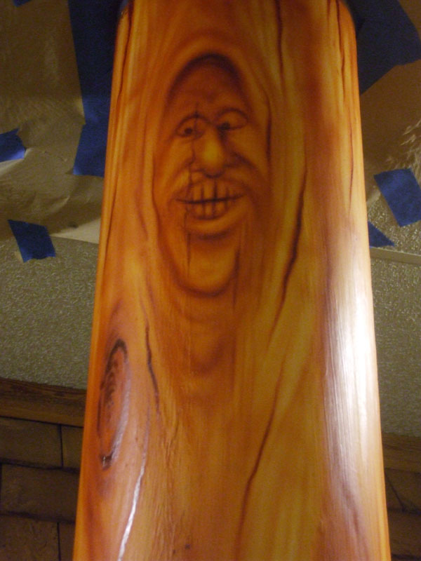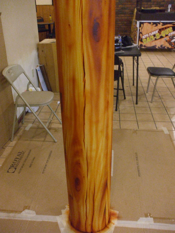 I have been working alot lately, and hadn't been here much, so I thought I'd stop in and share a current project with you guys. This week, I'm doing some airbrush artwork in a new restaurant thats fixin to open, and my first task was to "Do something with that ugly metal pole"!!! Or so said the lady that owns the place....lol.So.....I took her ugly metal pole and tried to convert it into a wooden support beam.....Concidering that we are located in a National forest, I'm anxious to find out if it'll pass the inspection of the locals....especially the ones that work in the timber industry....lol....I hope they like it. I'd also like to hear what you guys think about it.....I'm always my worst critic, but I'm actually happy with the way its turning out....Yeah, I'm not quite done with it yet....I've got a second pole and a couple of murals to do before its over, although some of it might not get done before their scheduled grand opening on the 5th...Yikes....Like I said, I've been busy lately and theres no end in sight yet. Ands its either been too hot or too windy or too busy to wet a hook lately, but I'm bout ready for some on the water theropy.