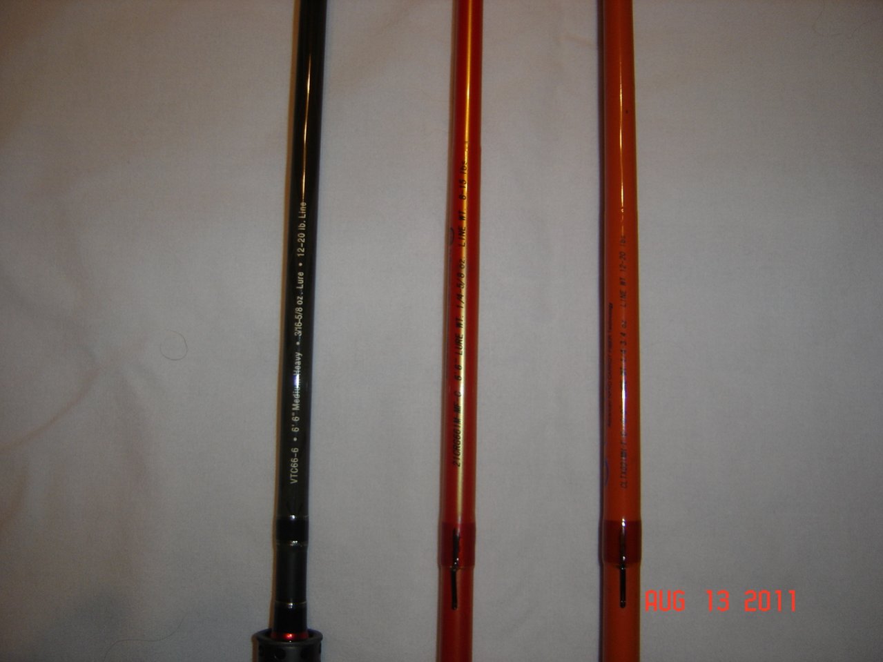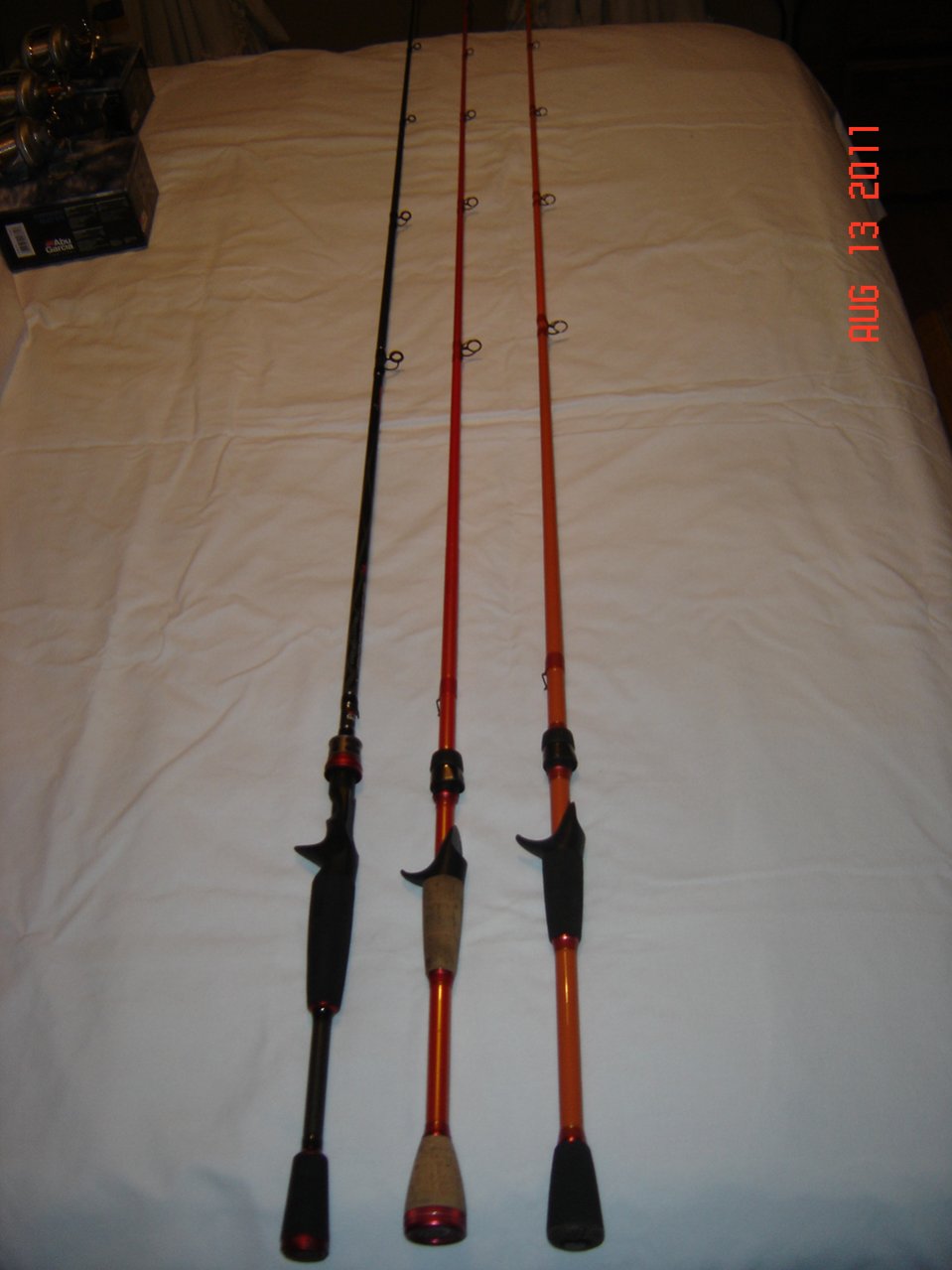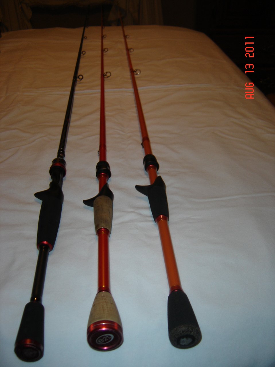 1st rod is a vendetta 6'6" MH 40.00 + shipping 2nd rod is a 21 carrot gold stix 6'6" MF 80.00 + shipping 3rd rod is a e21 carrot stix 6'9" MH-F 75.00 + shipping Email me if you are interested. Thanks Earl |