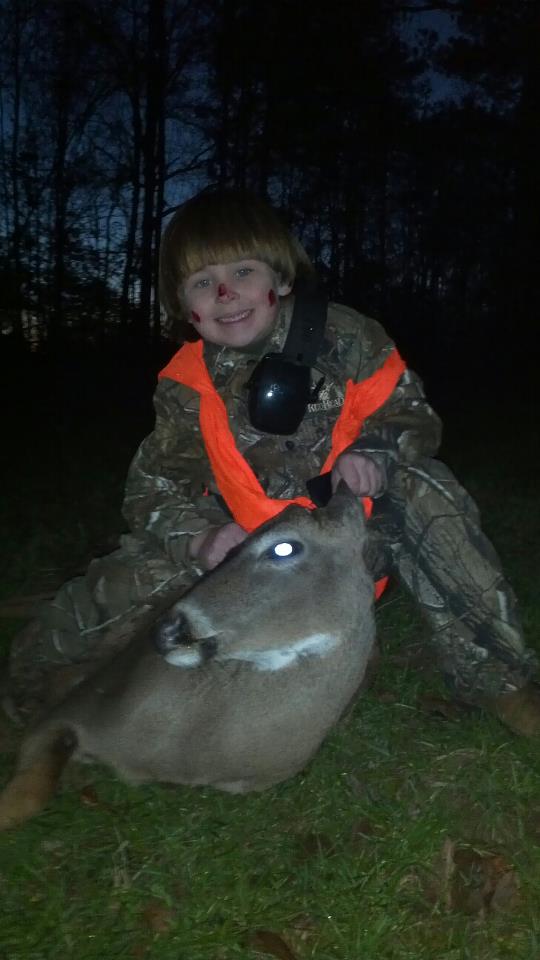 Me and the boys got back in to hunting a little this year. We had one more chance to go before I came back to work. I alternate between the 2 older ones and it was Dylan's (oldest) turn to go, but he deferred. So Tanner and I set out for the short drive to a buddy's food plot. I figured the season was about to come to an end when nothing had showed by 5. But about 5:15 I caught some movement out of the corner of my eye and got Tanner ready. The deer stopped about 15 yards in front of us and I told Tanner to go. I was the guidance system and he was the trigger man. We squared up on him and he squeezed the trigger. The deer never took another step. We were hi-fiving and everything. I was so proud of him. But on the other side, I knew Dylan would be sad because he had choose to stay at home. But hopefully we will get him on 1 next year.