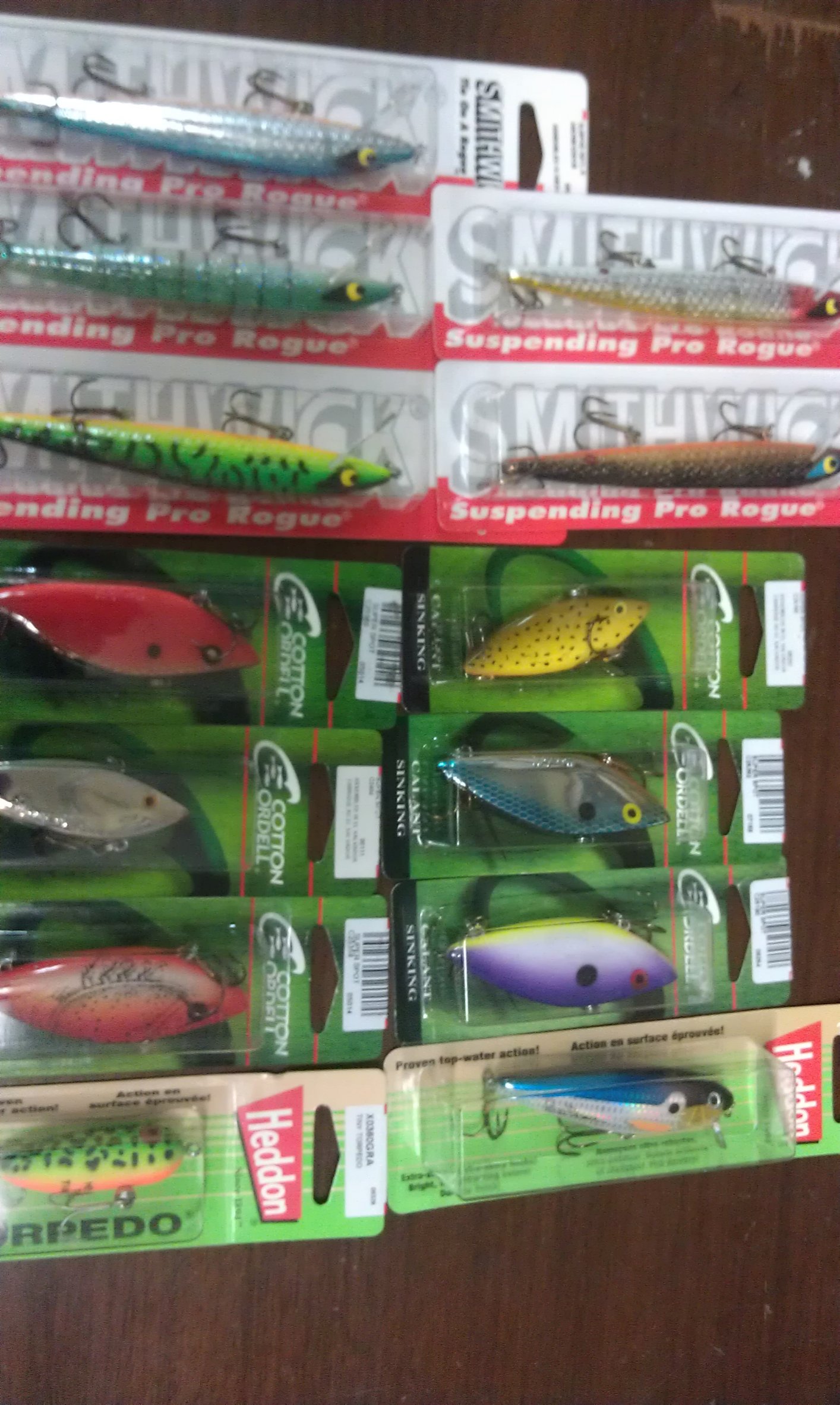 I have a large amount of lures from my Rep days. Need to clean up some of the pegs in the man cave. Assorted lures in the package never used. Plan on posting additional lots of lures at great prices. Spring is in the air and time to make someone happy that will use these great baits.