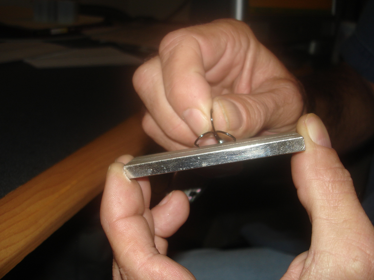 ![]() Please note for your amazement that I am able to seperate my hands from my body and still maintain an uncanny level of dexterity ![]() **note**angle at point of contact between hook and hone exaggerated for photo clarity----actual angle is about 5 degrees depending on hook size and design
