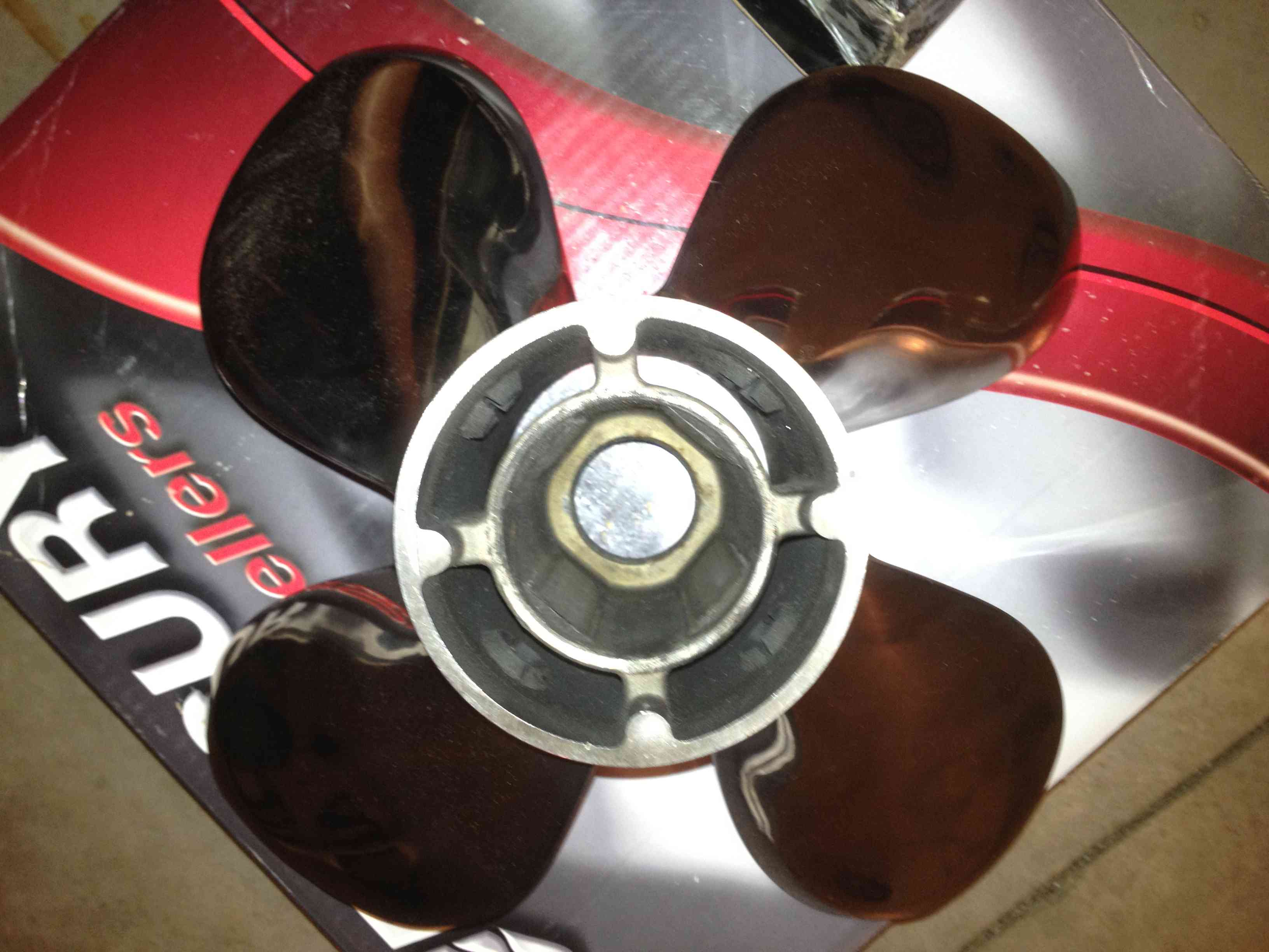 I got this prop with my boat, bought from a guy that fished a couple of times at high altitude reservoirs out west. Not enough prop for my boat, fishing the Illinois flatlands. This prop is in excellent condition 9/10, comes with solid PVS plugs and two new (never used) hub kits - Flo-Torq II p/n 835257K 6. PayPal payment, U.S. shipping included in price. |