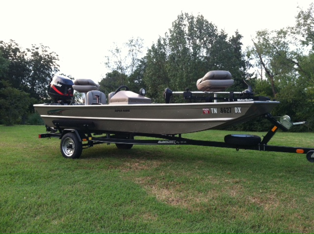 Bought a boat today so me and my son can fish some when he comes home from school for the summer. I hope I got a good deal its a Alumacraft super hawk 2004 model with a 40hp merc. Im gonna clean it up go through and make sure everything is as it should be. It runs great and everything seems to work but Im sure I will be fixing a few things. I paid 3200 for it, it seemed like a good price considering some of the boats I looked at. Anyway here are some pics.