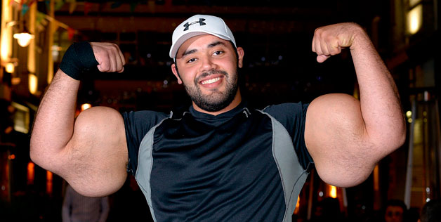 So evidently this dude is going in to the Guiness record books for the largest biceps, 31"! That's bigger than Joedog's waist! Here are the rest of the pics.
