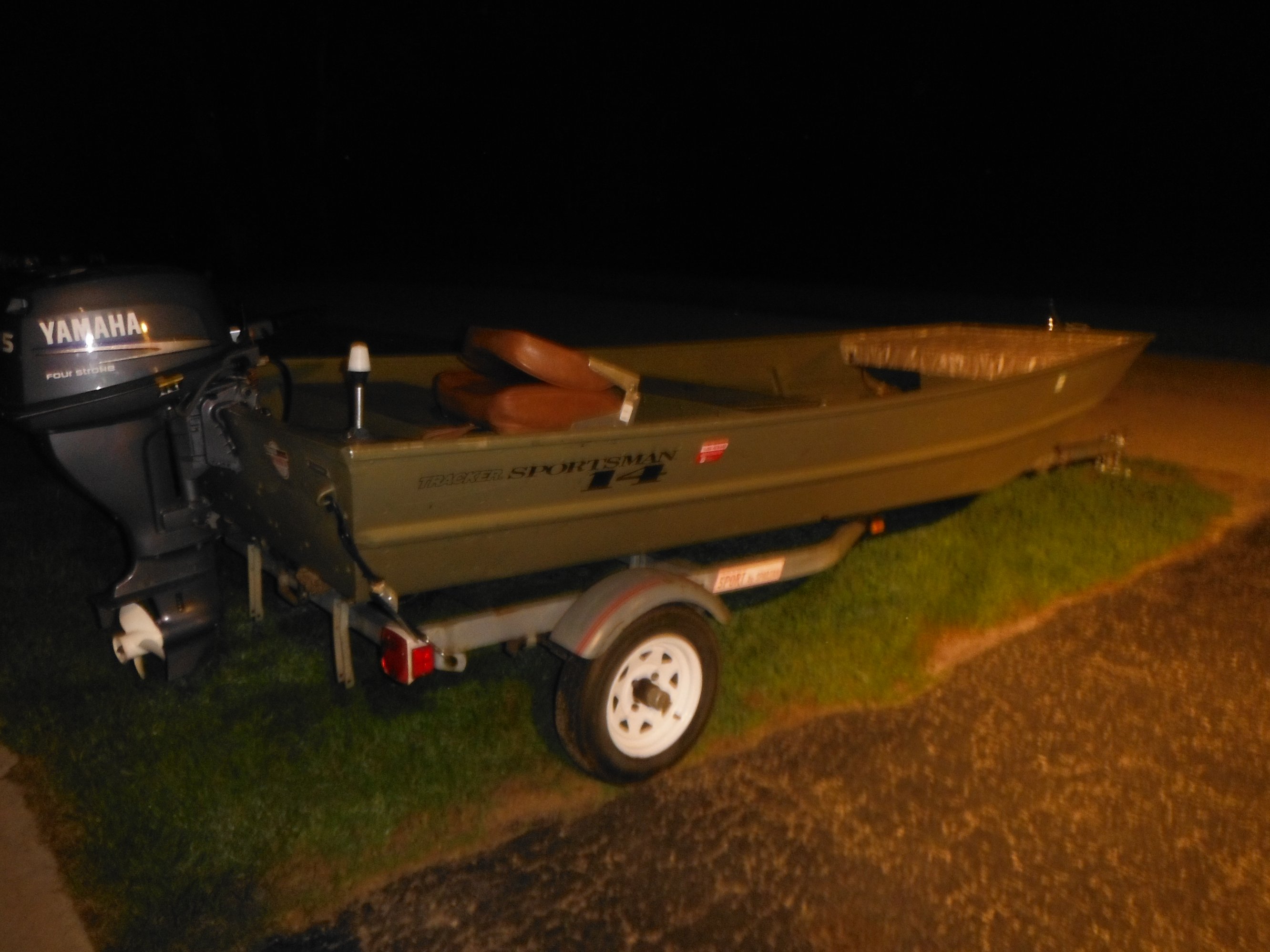 After a good week of craigslist hunting we found us a boat we like! She's just a 14' Tacker flat bottom jon boat for now, but she's soon to be bass boat-a-fide with a casting deck and carpet.