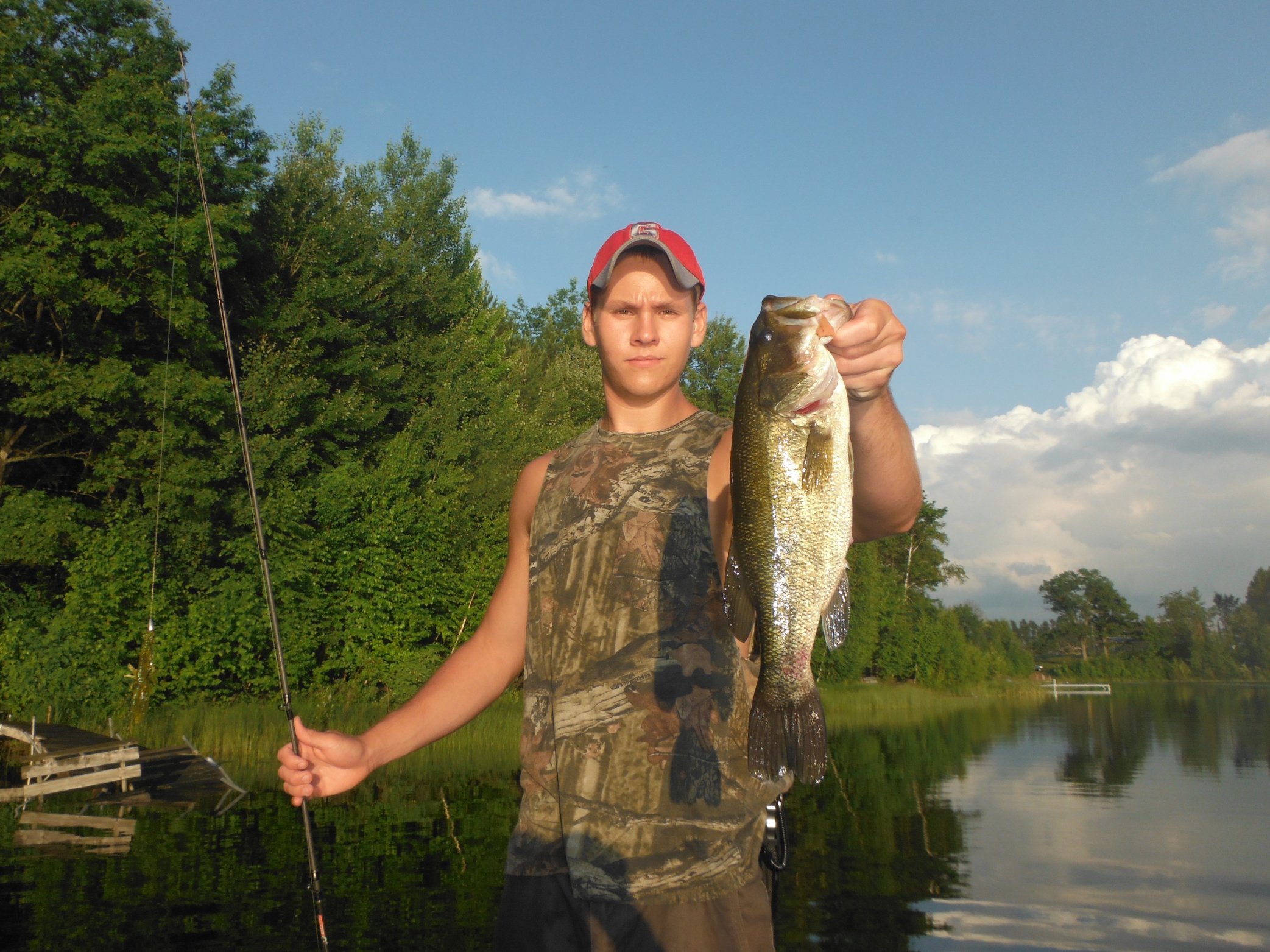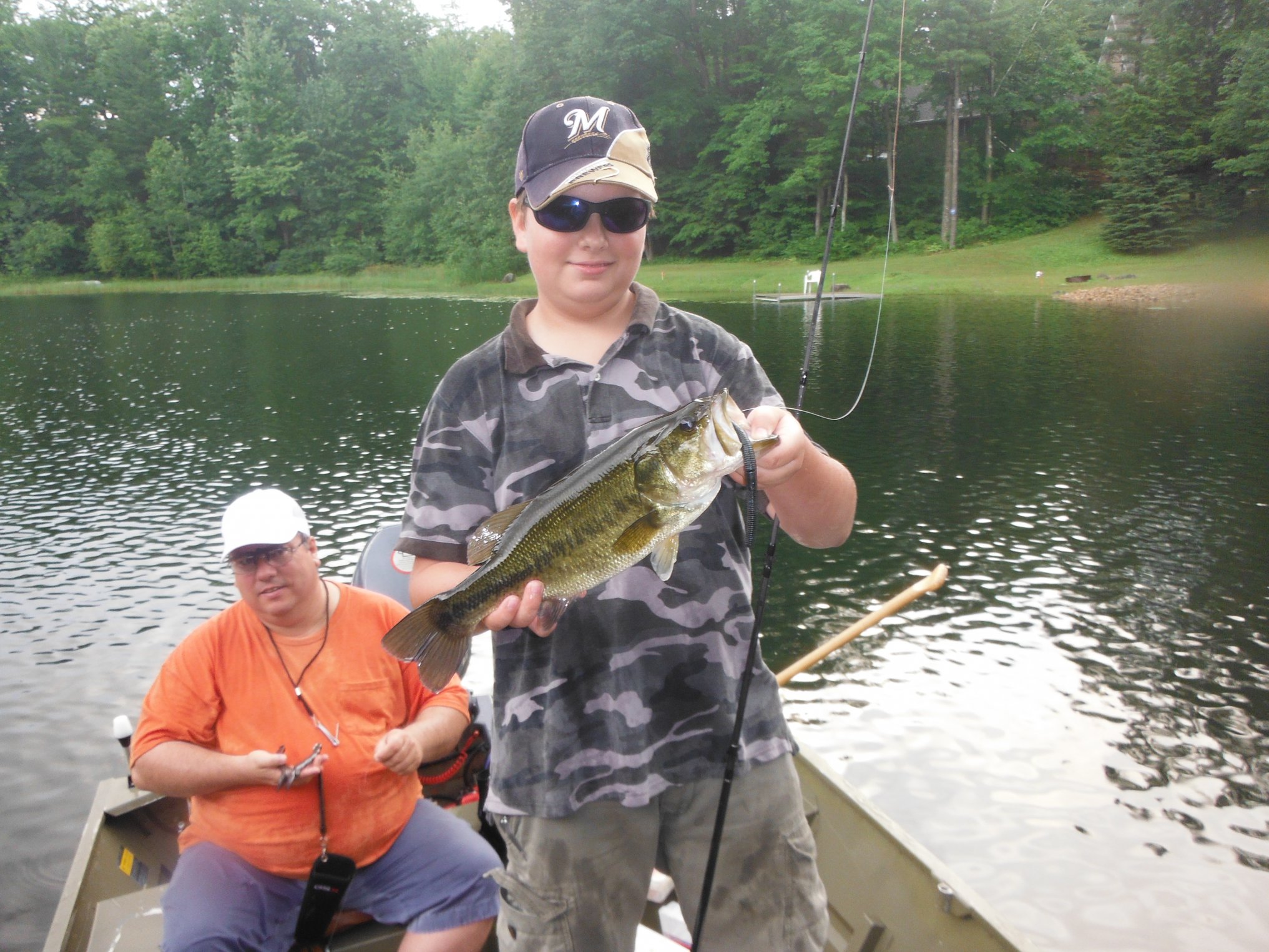 First thing we noticed about this lake is that it is exceptionally clear water, and according to the W-DNR, it's a spring fed lake. The whole shore line was also abundant with lilly pads, but not to an overwhelming extent. Sprinkle the occatoinal dock, pontoon and lay-down tree and brush pile and we had a fantastic looking lake on or hands. I started throwing a Big Bite Baits Craw Worm started catching fish right off the bat, first of which was a healthy 12 incher. By the time it was all said and done I had boated 17 healthy largemouth. Three that went around three pounds, and the rest averaging around two pounds. Little brother had been throwing a small Matzuo Jerkbait, ended up 10 or some dinks and bunch of pan fish. When he did pick up his baitcaster he ended up with a nice one around 3 pounds and was the biggest at the time. Dad sorta struggled the first put started catching em on texas rigged plastic worms toward the end. Around 10 for him a well. All in all I really like these lakes, and can't wait to fish em again. They're actually no-wake lakes and I have to use the trolling motor the whole time, but with our boat and the small size of them it works out just fine!