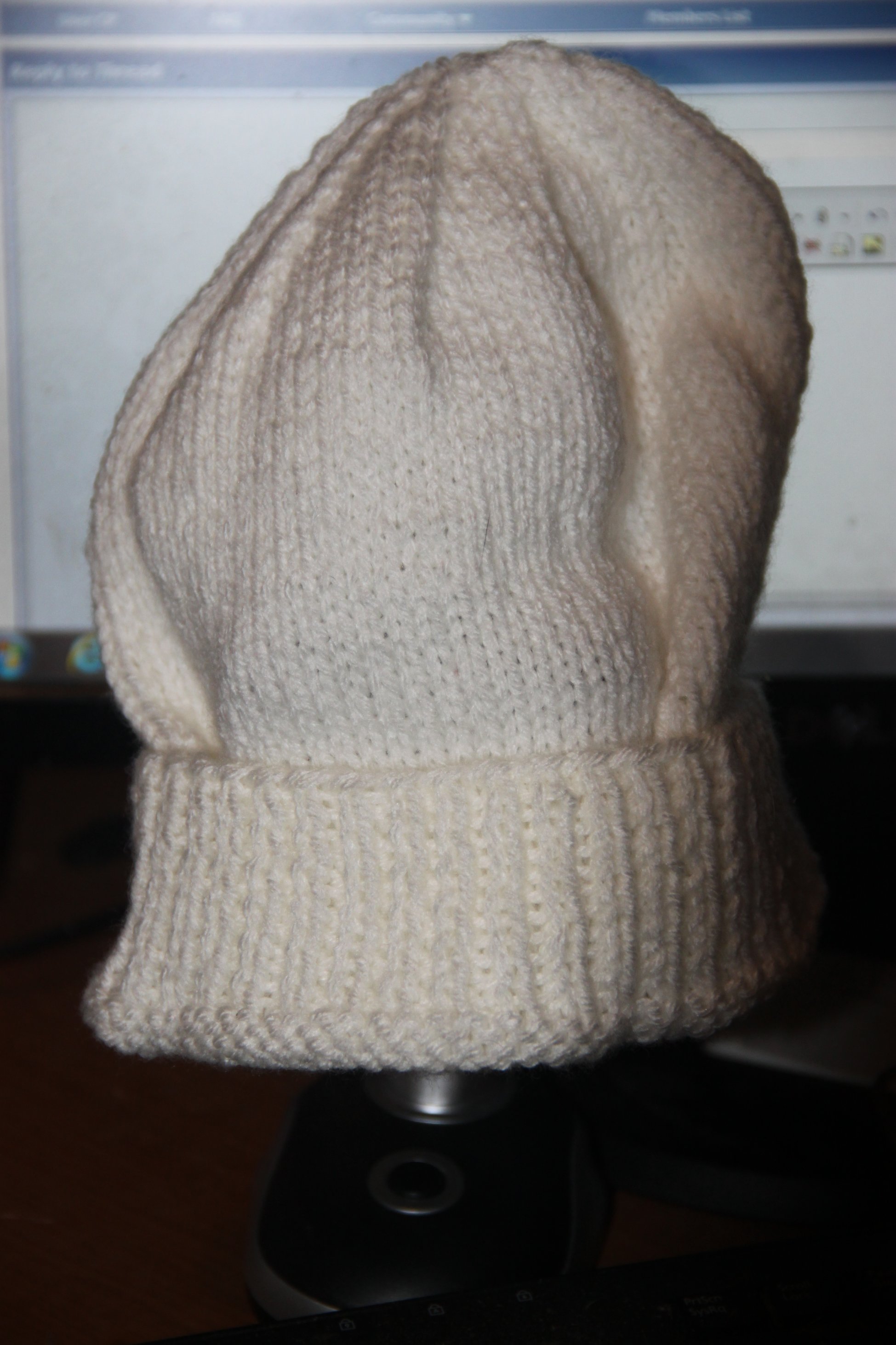 I recently received a package in the mail from Zooker's Mom, in it was a hand knit stocking cap and a hand written note that said: