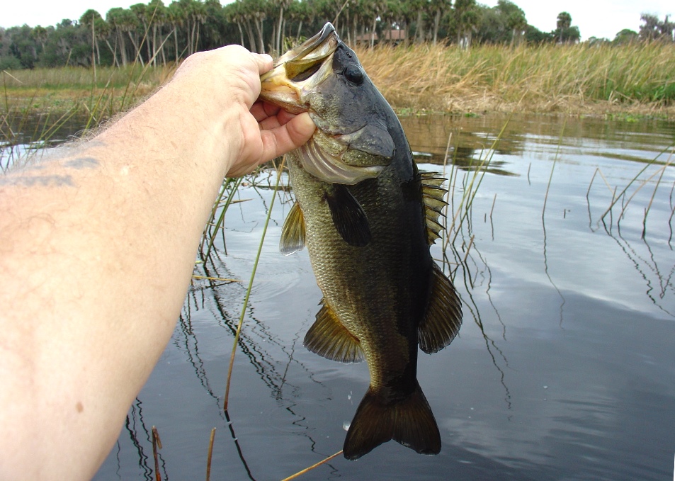 I can't believe I forgot to tell you all about my two first last year. My first largemouth bass on a frog, it was right at 14". And my freakiest catch of the year, was a very large bullfrog