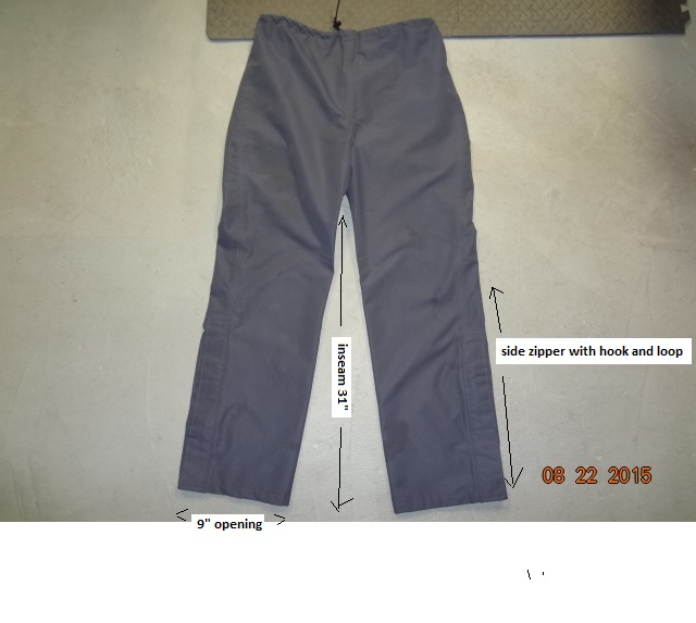 In Very Good Shape, couple years old. Jacket: 100% Polyester, 100% Nylon Lining, With 2 inside zippered pockets, 2 deep front outside zipped pockets, Cuffs hook-and-loop closures, Zippered hood with shocked-cord adjustment and face guard. Pants: 31” Inseam, Waist opening to 22 1/4” opening, with shock cord adjustment for waist. 9” leg opening with side zippered adjustment up leg to 14” near knee. Jacket & Pants are size M Asking $30.00 Free ship. Shot me a PM or my email is bass4everjim@yahoo.com if interested. Thanks |