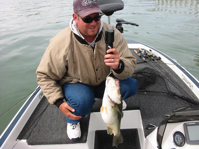 Clear Lake wasnt that nice to me today. I got only 2 fish. Weather had been good in the past week but today was a whole different ballgame. Water has warmed up about 5-7 degrees(high was 60) We had a tough day. Weather was nasty(rain&wind)! There was a major tourney that put ALOT of pressure on the water(160+ boats). We fished everywhere and threw everything. I got 1 fish(picture) on a Lucky Craft staysee and 1 on a swimbait(small fish). My swimbait was bigger than the fish...lol! Yhe fish in the picture weighed on Cul-M-Rite @ 8.16. She was fat and wanting to spawn badly! Over all it a decent day!